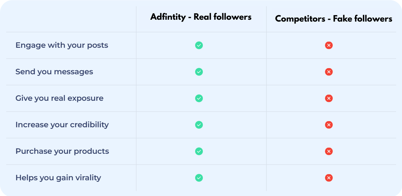 There is no one-size-fits-all answer — real growth depends on strategy. At Adfintity, we specialize in Instagram and YouTube engagement systems that deliver steady, targeted follower growth instead of artificial boosts.